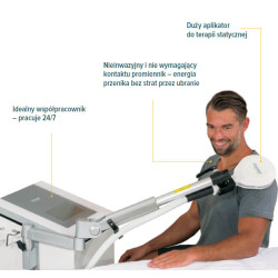 Do terapii statycznej powinien zostać użyty duży aplikator, zamocowany na ramieniu. Przed zabiegiem należy wymasować punkty bólowe i spustowe, a później zastosować terapię statyczną z zadaną mocą wyjściową. Dzięki temu każdy punkt bólowy oraz spustowy zostanie objęty leczeniem. Należy pamiętać, że punkty spustowe mogą znajdować się poza obszarem odczuwania bólu.