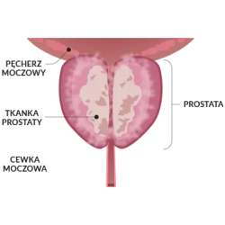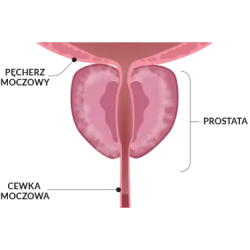 Powiększona prostata może uciskać cewkę moczową, utrudniając odpływ moczu z pęcherza moczowego.