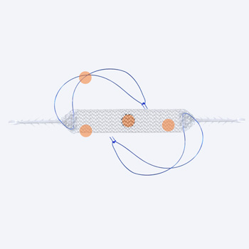 Monofilamentowa taśma wykonana z polipropylenu typu I, zintegrowana z mikrohaczykami zapewniającymi bezpieczne zakotwiczenie. Materiał charakteryzuje się optymalną biokompatybilnością i długoterminową stabilnością mechaniczną.