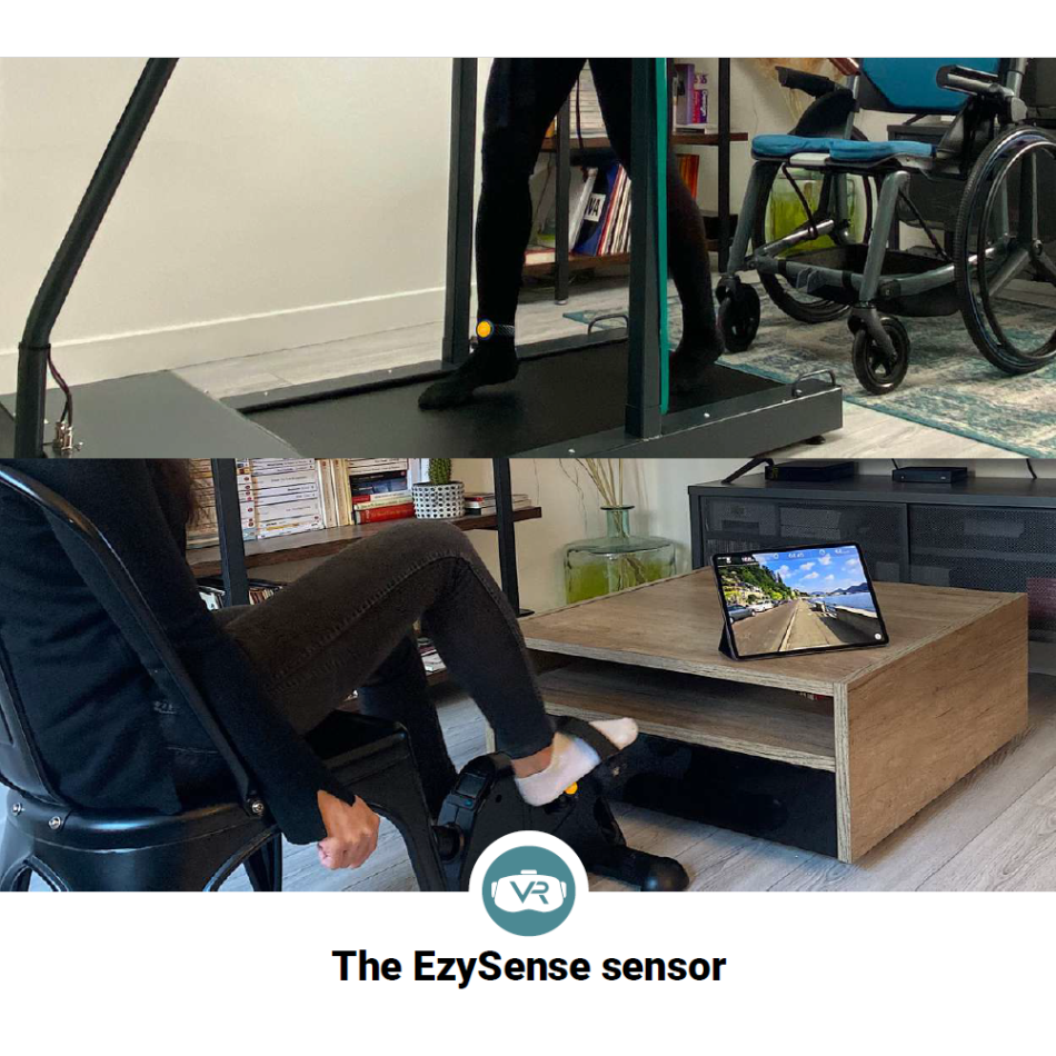 Ćwiczenia wymagające wyłącznie sensora EzySense i tabletu. Aby rozpocząć, wystarczy przymocować sensor do kostki użytkownika w trybie "Walk" lub do korby dowolnego roweru stacjonarnego, trenera pedałowego czy ergocykla w trybie "Cycling". Ta prosta konfiguracja natychmiast digitalizuje doświadczenie użytkownika.