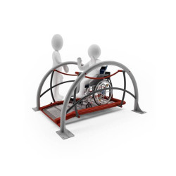 Huśtawka integracyjna to urządzenie, którego zadaniem jest zapewnienie możliwości jedno- czesnej zabawy osobom pełnosprawnym oraz użytkownikom na wózkach inwalidzkich.