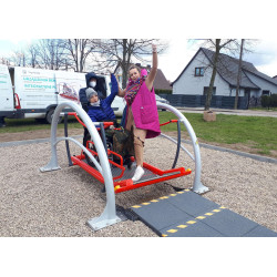 Huśtawka integracyjna firmy TERMA to urządzenie, którego zadaniem jest zapewnienie możliwości jednoczesnej zabawy osobom pełnosprawnym oraz użytkownikom na wózkach inwalidzkich.
