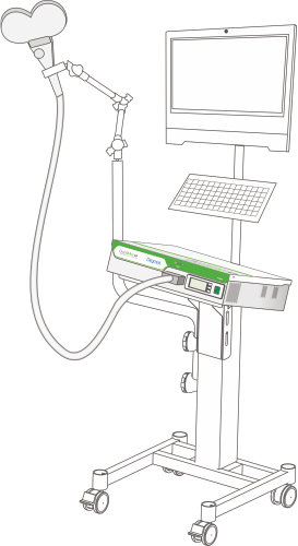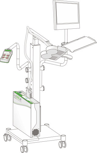 - wózek FlexTower z innowacyjnym, zbalansowanym wysięgnikiem przeciwwagowym wspomagającym definiowanie prawidłowej pozycji aplikatorów oraz autoblokadą ich położenia, który znacznie zmniejsza wysiłek konieczny do osiągnięcia odpowiedniej pozycji i unieruchomienia aplikatorów Deymed,